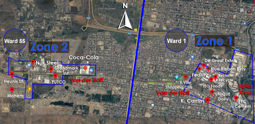 The Pretoria West Industrial Area is looked upon as a critically important Industrial Area as it hosts some of the large Manufacturing Companies in the Capital City, e.g.: Coca-Cola Beverages South Africa (CCBCSA); Heunis Rainwater Goods, PPC Cement and Kare Sheet Metal Products, etc..